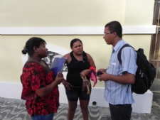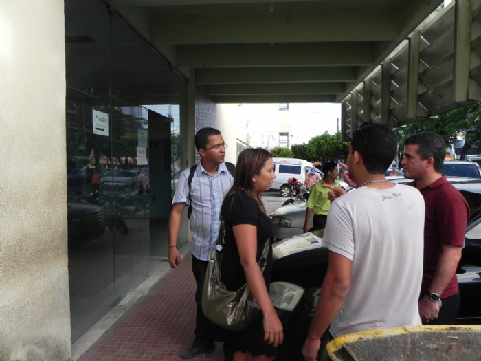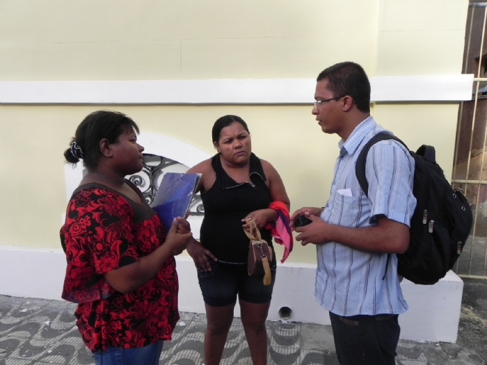 | Representante da empresa conversa com Izabel (de vermelho) e a irmã(Fotos: Portal Infonet) |